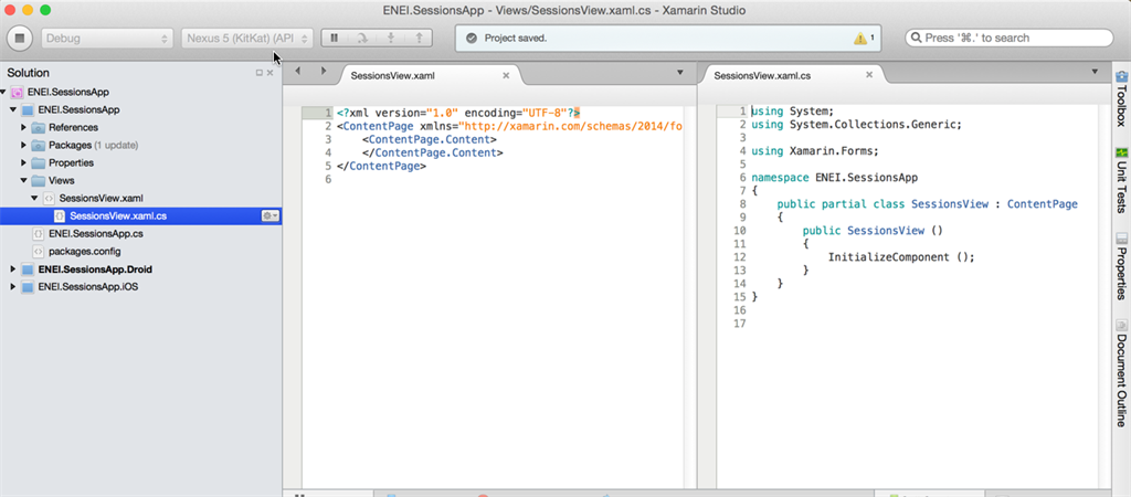 Now let's change the App.cs in ENEI.SessionsApp to use the SessionsView: