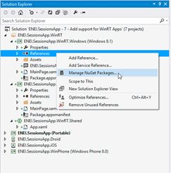 Now, you will add the ENEI.SessionsApp reference to the WinRT project, as described in Figure 4 and Figure 5.