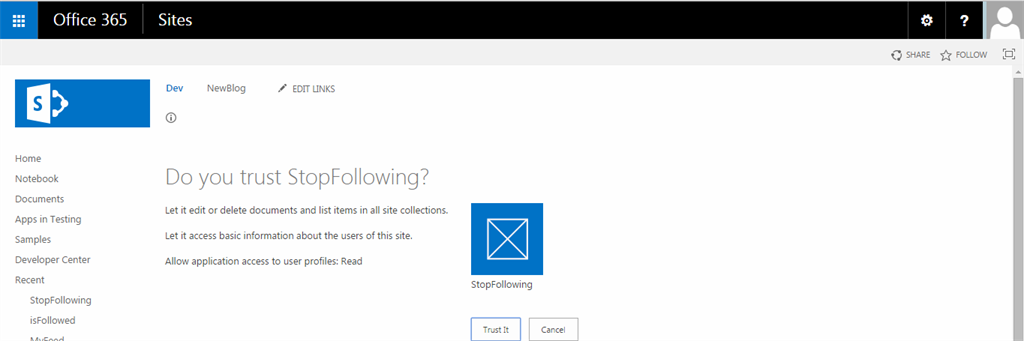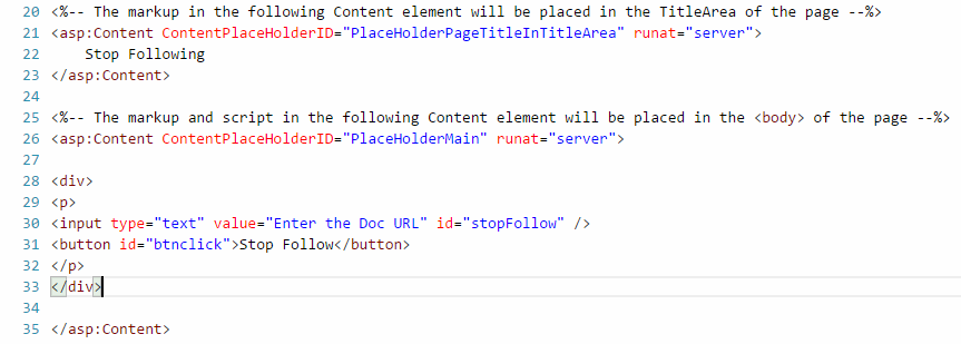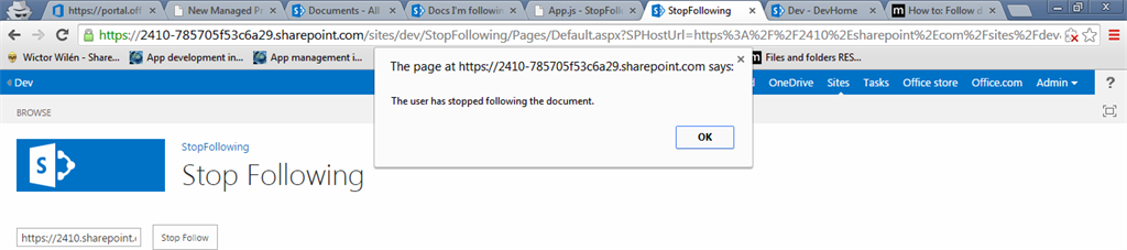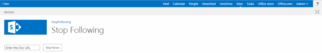 This is developed using the NAPA development tool, you can just pass the Document URL in the Text box, on the click of the “Stop Follow” button the Result will be displayed in an alert message.