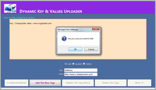 This article will help you add the Key and Value to the web.config file dynamically.