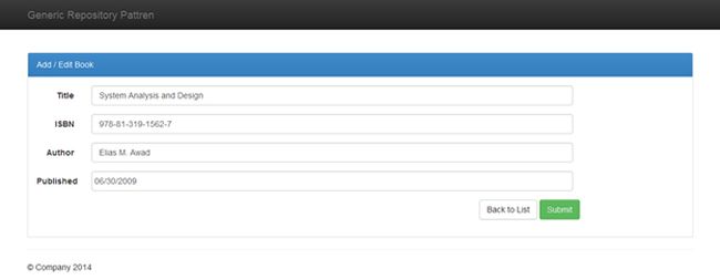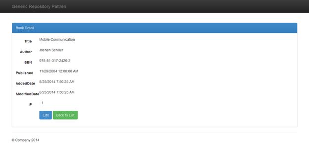This article introduces the Generic Repository pattern and Unit of Work in ASP.NET MVC applications. We are developing an application for a Book entity on which we can do Create, Read, Update and Delete operations. To keep the article simple and to make it easy to understand the Generic Repository pattern and Unit of Work, we use a single book entity in the application.