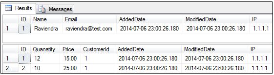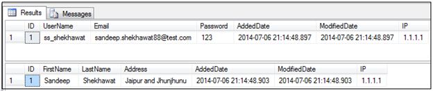 Now run the Test method and you get your table in the database with data. Run the select query in the database and get results like.