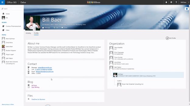 Delve can present information from Exchange, OneDrive for Business, SharePoint Online and Yammer based on user's interactions. Please find the references section to learn more about Delve.