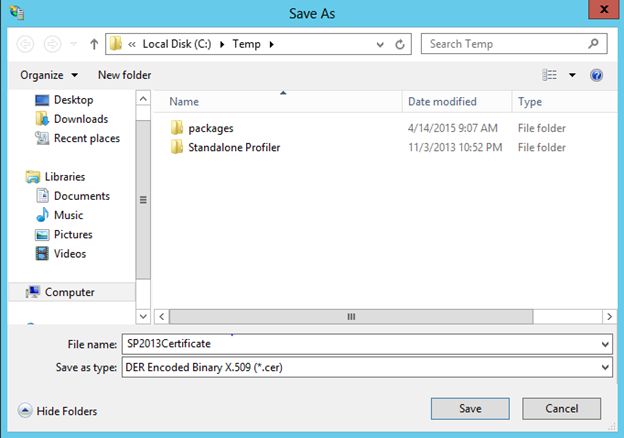 - $certPath = "C:\temp\SP2013Certificate.cer"