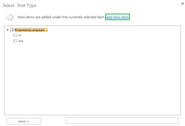 Selecting a parent term and clicking Add New Item allows us to create a new term under the parent.