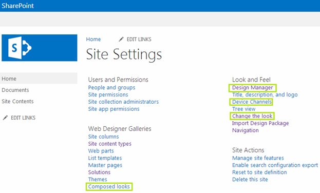 - Design Manager that helps in converting an HTML file to SharePoint Master page