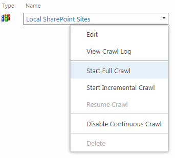 We need to do a Full Crawl now. Open Central Administration then select "Service Applications" > "Search Service Application" > "Content Sources". Select the content source and choose Start Full Crawl.