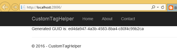 Below is the complete code for displaying GUID on View: - @using CustomTagHelper.Services;