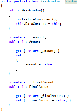 To make this example simple, I am simply creating 2 properties in code behind as in the following: