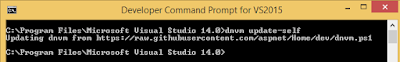 Open Visual Studio 2015 and do dnvm update using command line as:
