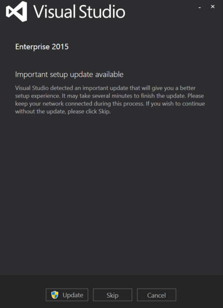 If you don’t want to suffer like me then my recommendation is to do the update directly from the Control Panel, rather than doing it using VS2015.1.exe. Hope you enjoyed troubleshooting.