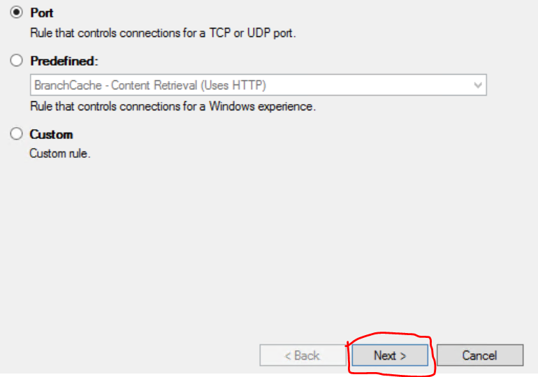 - Leave default on Profile and click next and on name section give name to rule and click finish.