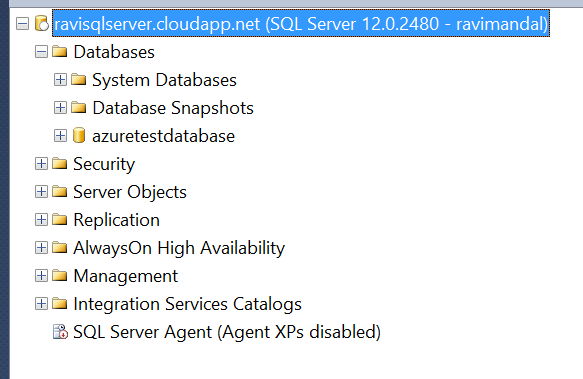 - You can see I have a test database on my Azure VM SQL Server so do I get access on it at my local SSMS.
