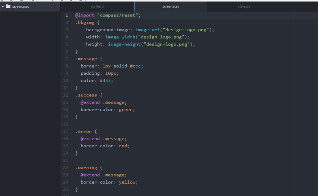 Now I am going to write some Sass code in screen.scss file.