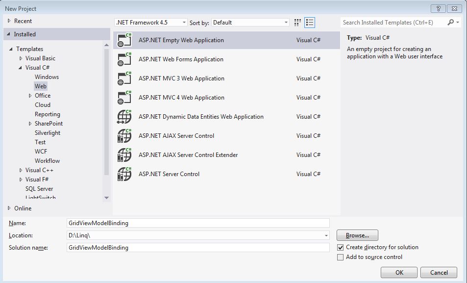 This article shows how to implement Model Data Binding with ASP.NET data controls using the Select Method attribute of a data bound control. It is a new way to bind data to data controls in ASP.NET 4.5.