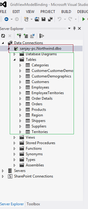 Now the Northwind database is as shown in the Database Explorer window.