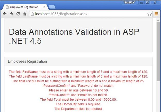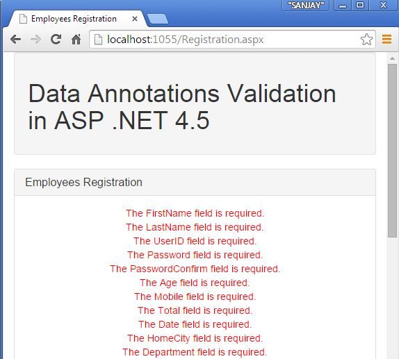 - <h1>Data Annotations Validation in ASP .NET 4.5 </h1>