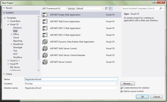 Step 1: Create a new project using "File" > "New" > "Project..." > "ASP .NET Empty Web Application".