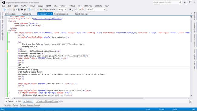 Step 3: Use the following Source code for the “Event.Html” in the Design Page View.