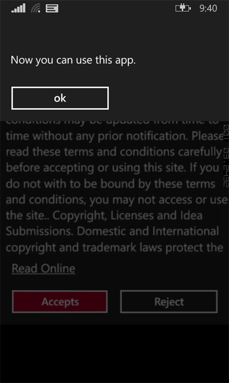 In this article we will create a terms and conditions dialog for a Windows Phone 8 app. To create this you have two choices, one is to create an app page for it and the other one is to create a dialog box. The latter one looks more promising and user friendly. For creating a T&C dialog I'll use the Custom Message Box control of the Windows Phone toolkit. In our app we can use the default message box to show alerts or messages to the user but it is very limited. Like we won't be able to show a scrollable message or hyperlink and so on. WP8 toolkit removes the limitations of the default message box by providing a Custom Message Box control and using a scroll viewer inside the message box that allows us to show more content. So let's get started.