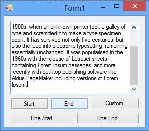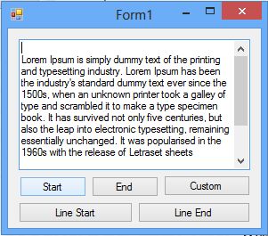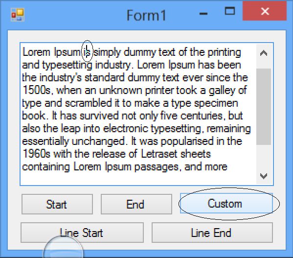 In this article we will learn how to position the caret programmatically in a text box. It may be useful in various situations. In this article we will cover the five positions: