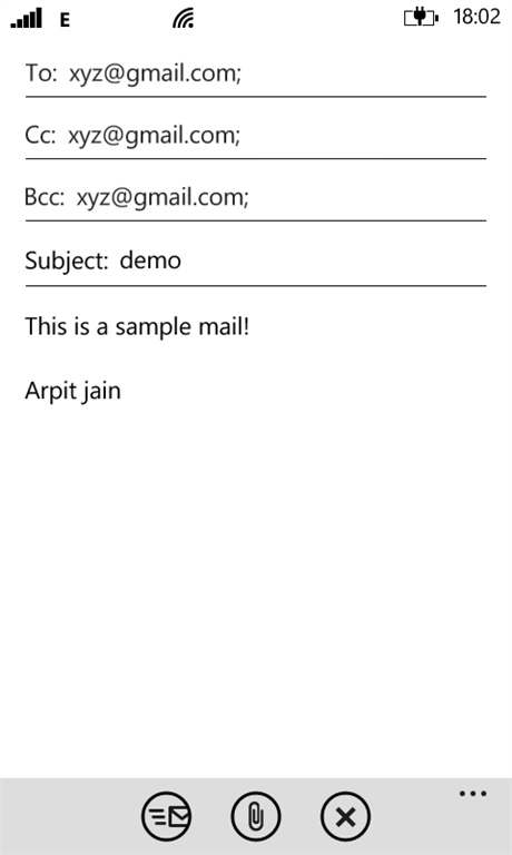 In this article we will learn about compoisng email. We will see how to send email from our app using the Windows Mail app. For that purpose we will use a Windows Phone task launcher. The good thing about this launcher is it's very simple to use and can be integrated into an app with just 4-5 lines of code. So let's start.