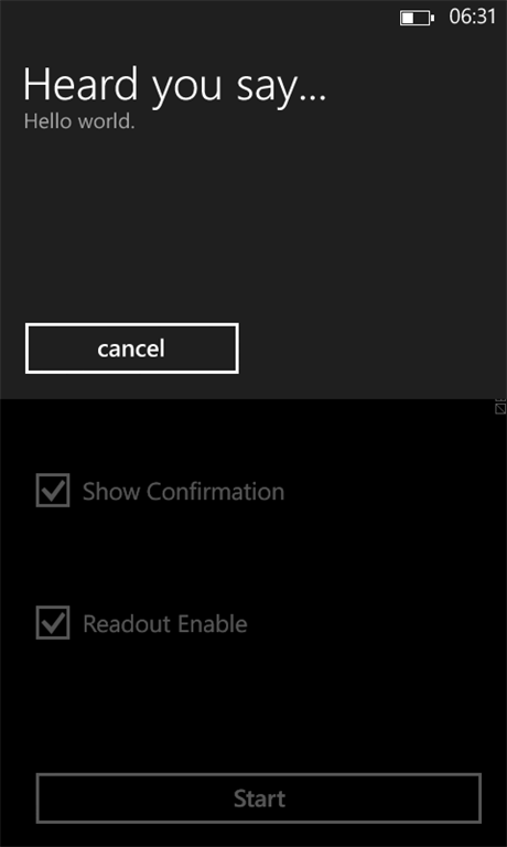 This property sets whether or not the successfully recognized text is to be spoken back to the user on the confirmation page.