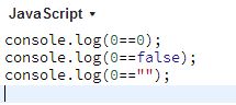 The Falsy values 0, "" (empty string) and false are equal to each other and comparison among them results in a true value.