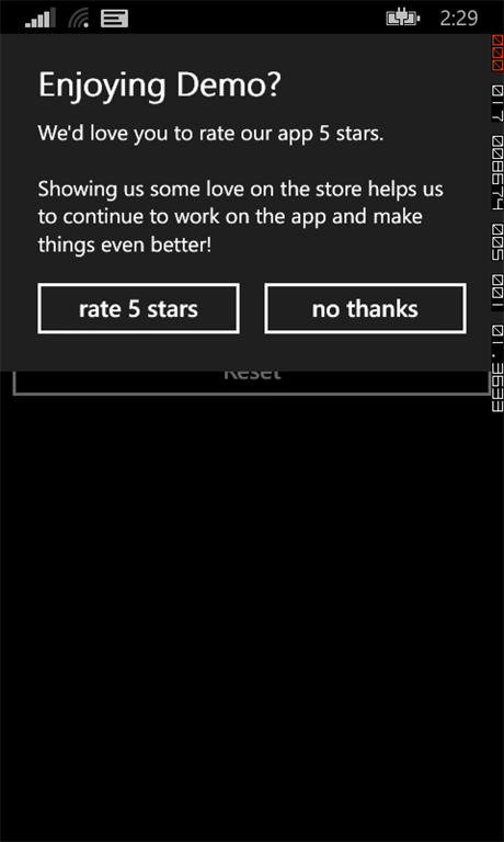 In this demo I'm using only basic settings and methods of the Rate My App Component. This component is versatile and can be customized to suit your application specific requirements.