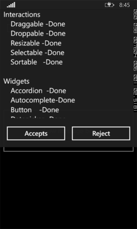 Custom Message Box is a control provided in the WP8 toolkit for customizing the interface and content of the message box. It enables you to add various UI elements to the message box that is not possible in the default message box. In this demo I'm placing a scroll viewer inside the message box. This can be useful for showing readme files, about, and other long info.