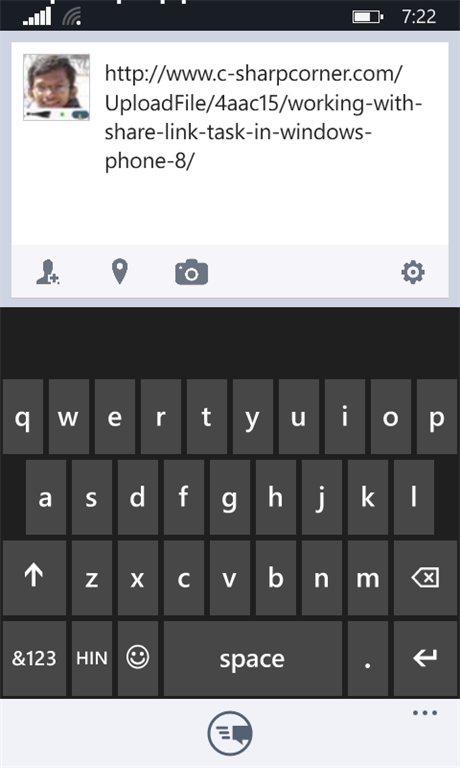 This is a kind of launcher provided by Windows Phone to launch the share screen from an app so that the user can share the link. The task can be customized with various properties for its proper use.