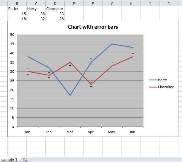 Step 2: Using the same sample data, I create another chart to show the error bars in Excel using C#. Only the different codes are listed.