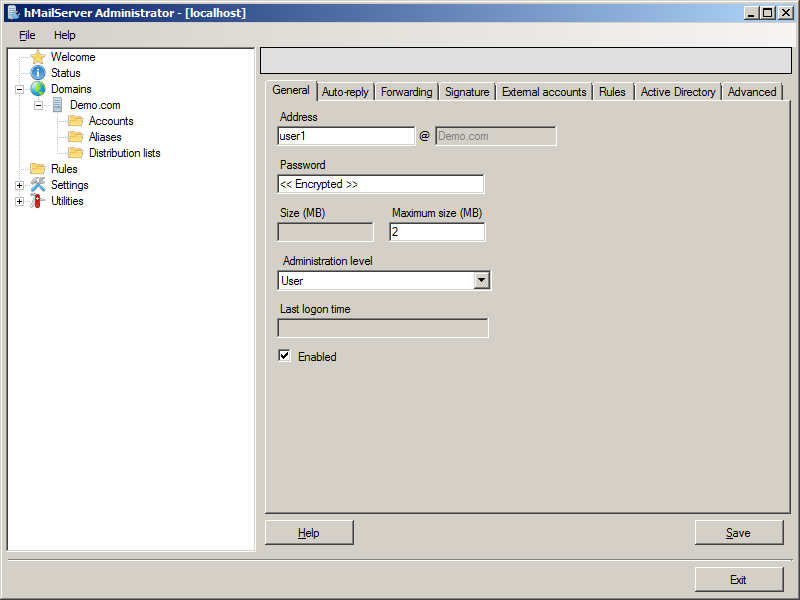 Create another user with the same procedure as above. Now you have created a domain “Demo.com” with 2 users ([email protected], [email protected]).