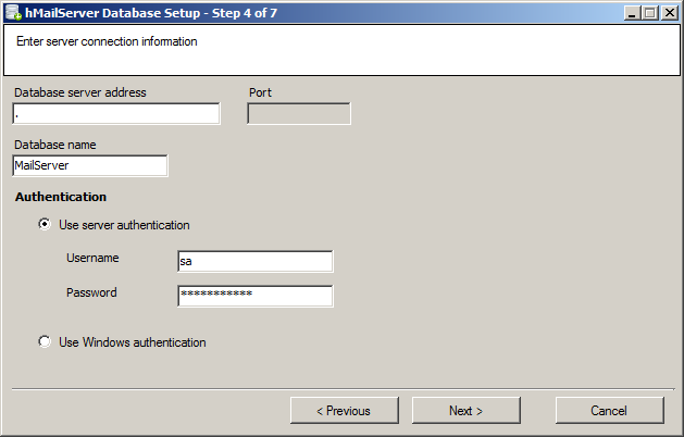 Select “Create a new hMailServer Database” and proceed. Next.Select “Microsoft SQL Server” and click Next.