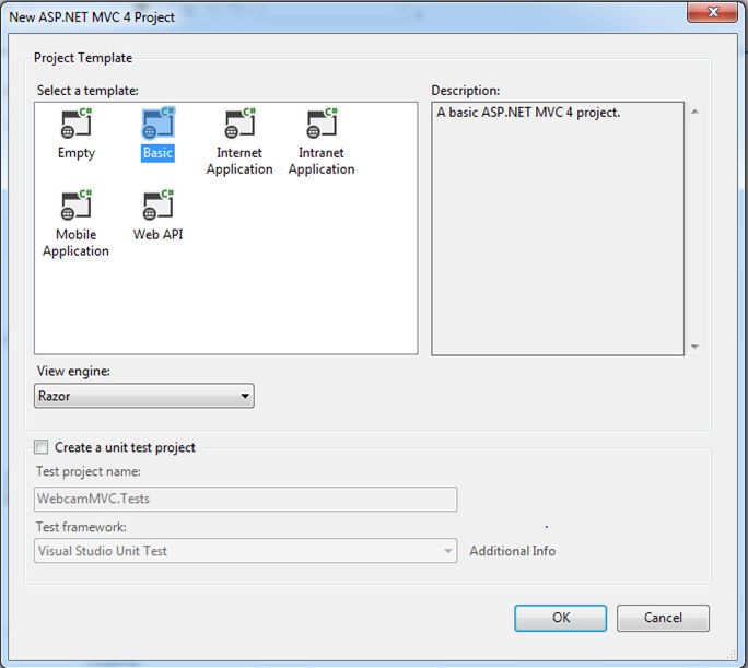 After naming it just click on the OK button. A new dialog will then popup for selecting a template. Select Basic template and click the OK button.