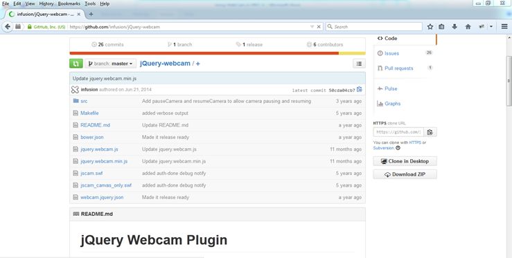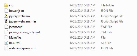 For downloading (webcam.js related) files just visit the give URL: jQuery-webcam.