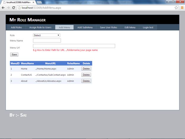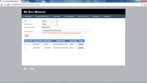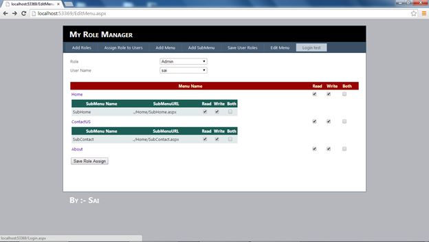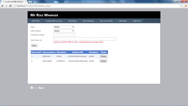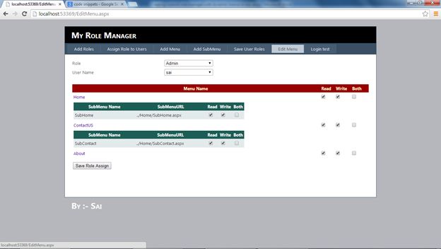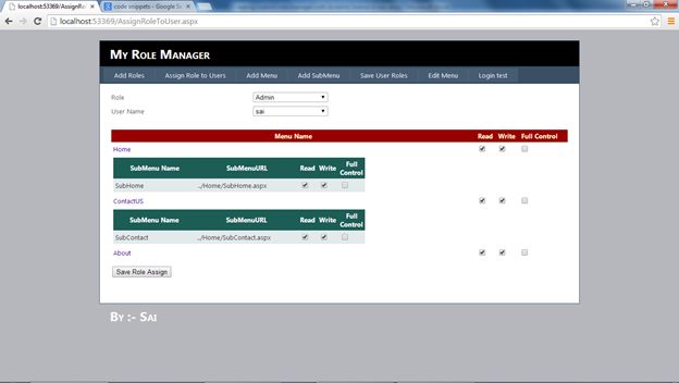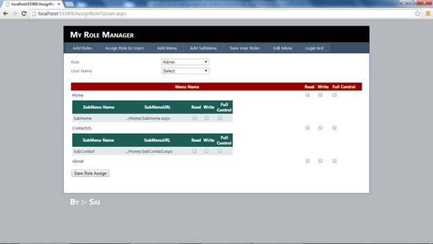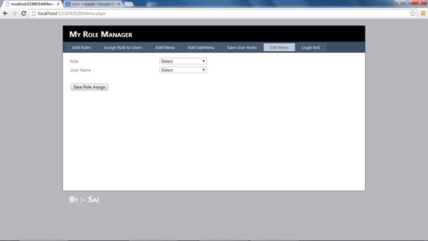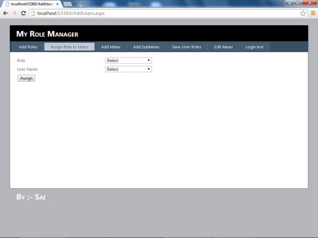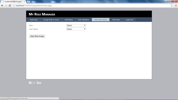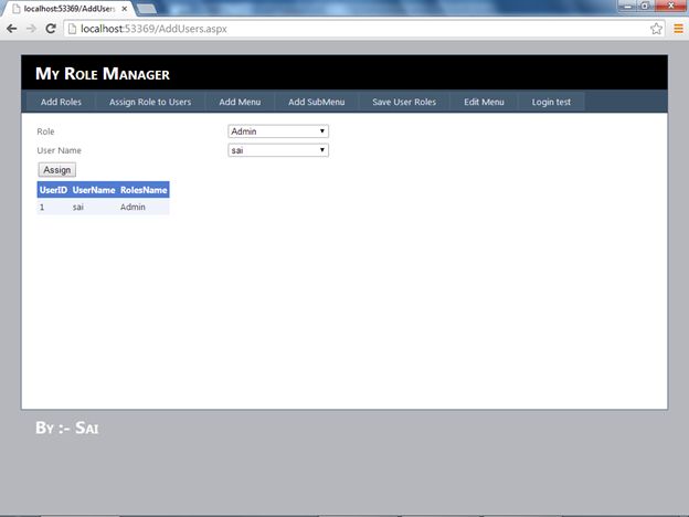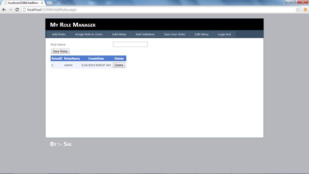1. For creating and roles I have created a page [ AddRoles.aspx ]