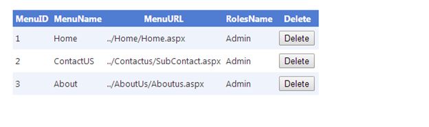 I am passing session[UserID] to the Stored Procedure Usp_GetAllMenuofRole and getting all the menus from that procedure in the dataset and then using a loop to get all the rows in the dataset.