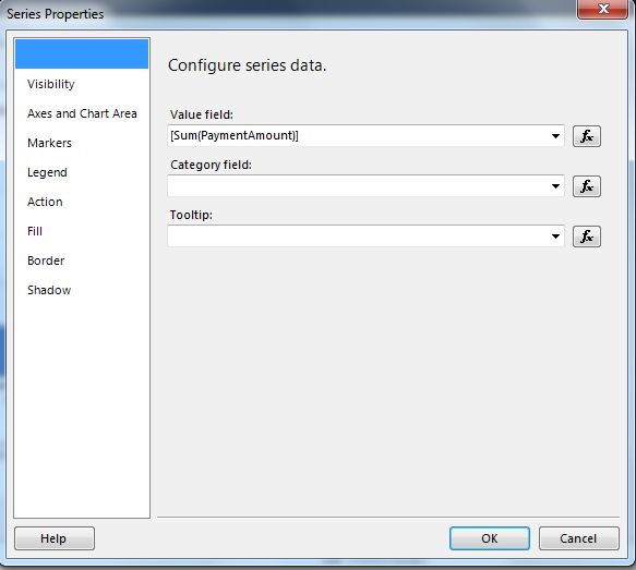 At the top you will find the Sum of Payment amounts but we have already done a sum in our query; we don't require this to be removed, just right-click on those fields and select Series Properties.