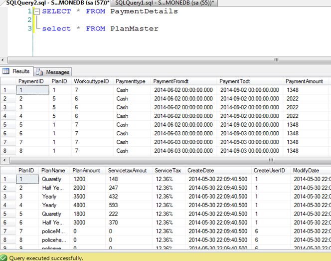 In the PaymentDetails table I am storing all the payment related data with PlanID from the PlanMasterTable.