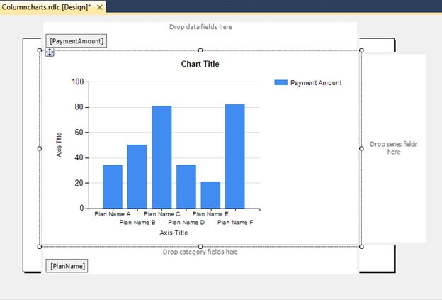 At the bottom I will select PlanName as "X axis" and for "Y axis" I will select PaymentAmount.