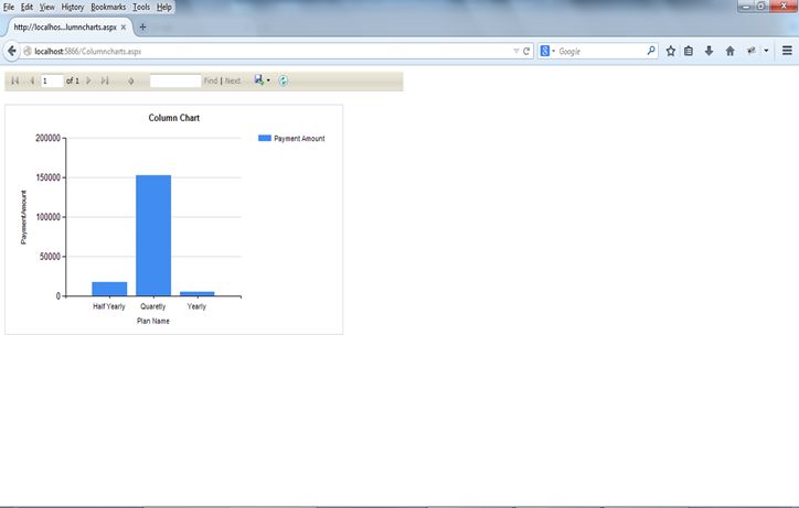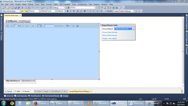 For this I will go to the Columncharts.aspx page and go to my desgin view; the following view will appear: