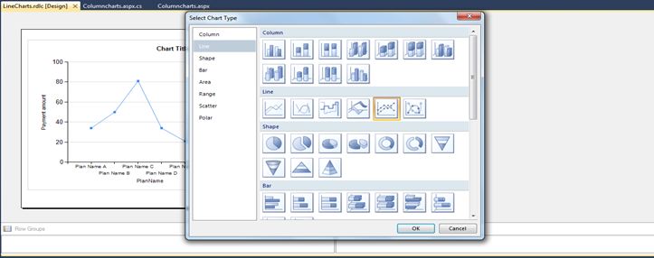 When selecting we just need to select a New Line Chart from Charts Types of Report Viewer.