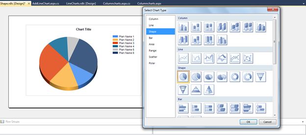 When selecting we just need to select New Shape chart from the Chart Types of Report Viewer.