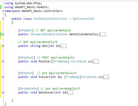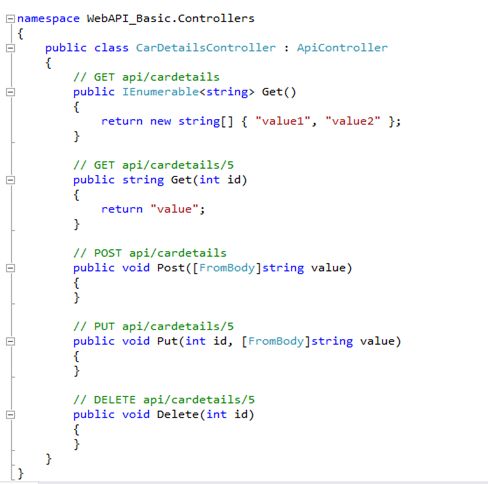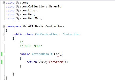 After adding the Controller and View now let us move back towards the Web API and make some changes that we have already created with the name “CarDetailsController”.