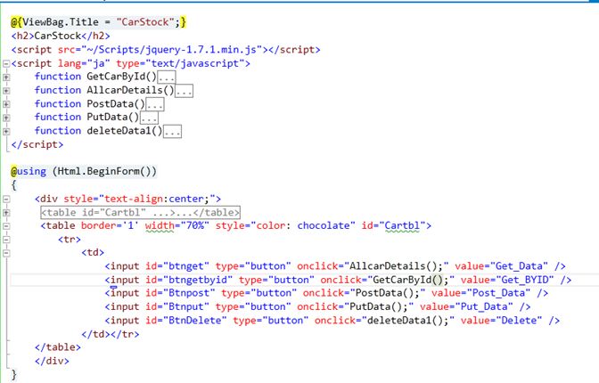 After adding the model properties now I will consume the HTTP service developed using the ASP.NET Web API in a simple cshtml page with jQuery and Ajax.