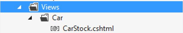 For that in the View folder I will add a folder named Car and inside that folder will add a CarStock named view. To add it just right-click on the View folder and select View.