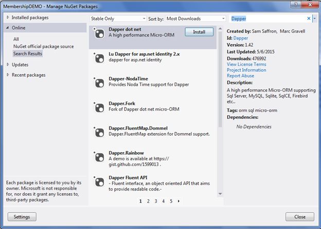 Now we will add a Dapper reference to the project because we need to get data from the database.