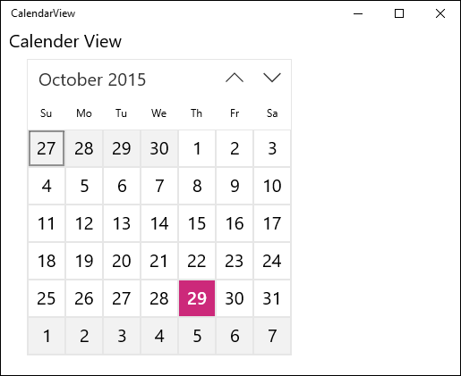 - <TextBlock Text="Calender View" FontSize="20"></TextBlock>