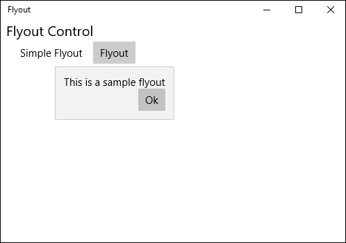 - <TextBlock Text="This is a sample flyout"></TextBlock>